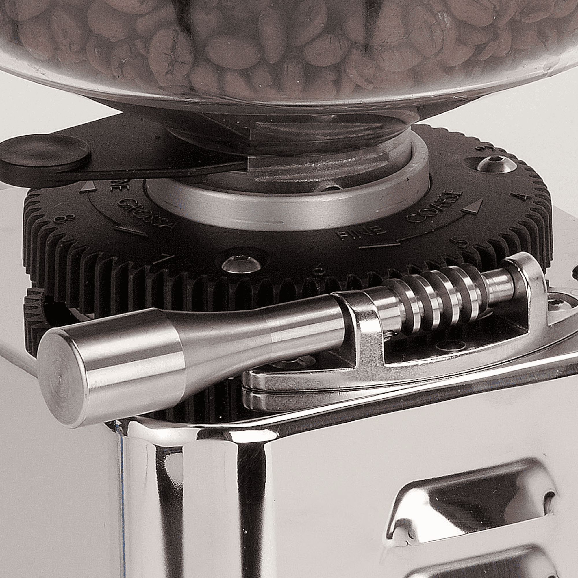 Die ECM S-Automatik 64 Chrom/Inox beeindruckt schon beim ersten Anblick durch ihr kompaktes, schlankes Design. Das Gehäuse aus poliertem Edelstahl fügt sich perfekt in jede moderne Kaffeebar ein und harmoniert besonders gut mit hochwertigen ECM Siebträger Espressomaschinen. Mit knapp 42 cm Höhe wirkt die Kaffeemühle elegant, ohne sich in den Vordergrund zu drängen. Dank des massiven Gewichts von fast sieben Kilogramm steht die Mühle stabil und vibrationsarm auf der Arbeitsfläche. Auch akustisch weiß sie zu überzeugen: Mit rund 78 Dezibel zählt sie zu den leiseren Mühlen im Test und sorgt für angenehmes Arbeiten, selbst bei häufiger Nutzung.