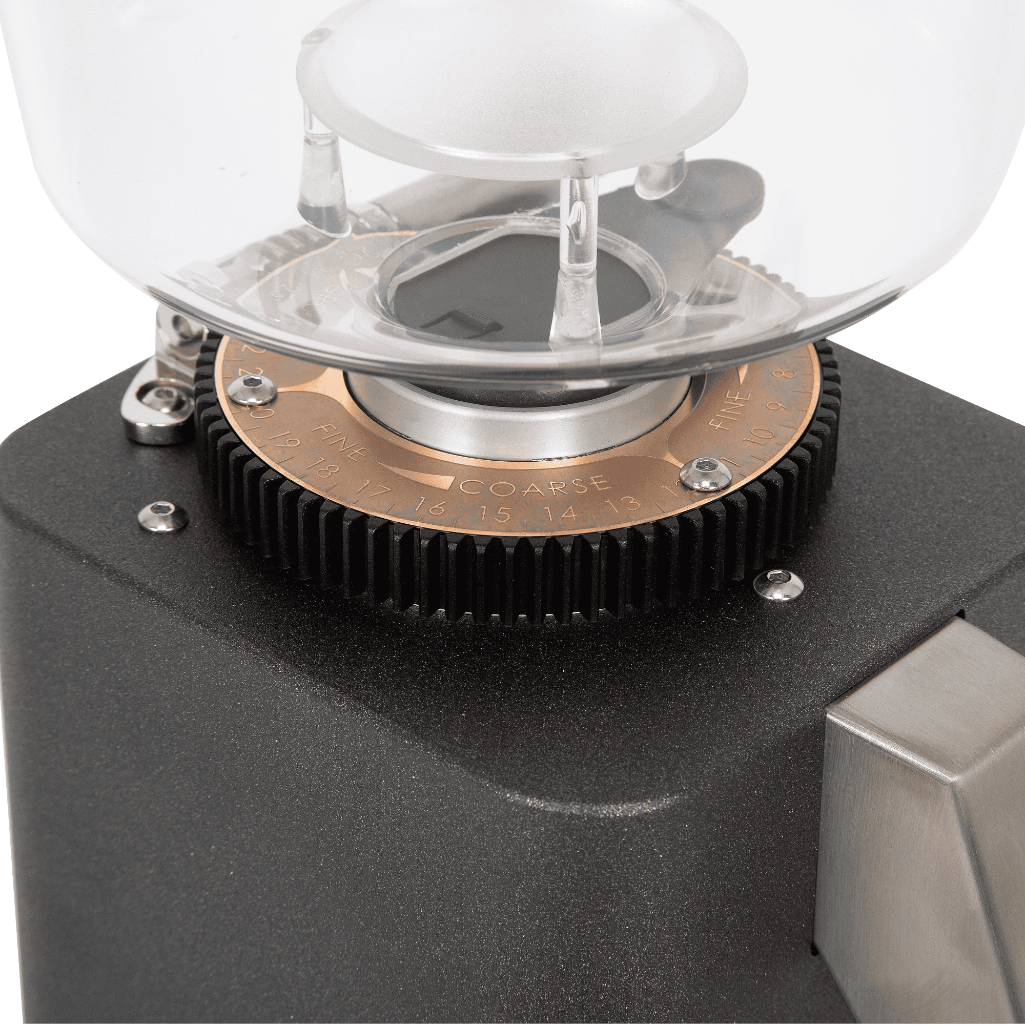 Die ECM S-Automatik 64 Heritage Line ist eine Espressomühle, die modernste Technik mit exklusivem Design kombiniert. Schon auf den ersten Blick überzeugt sie durch ihr edles Erscheinungsbild: Ein pulverbeschichtetes Gehäuse in Anthrazit, akzentuiert durch kupferfarbene Details, sorgt für einen stilvollen Auftritt in jeder Küche. Doch entscheidend ist die Technik im Inneren: Mit 64 mm Mahlscheiben aus gehärtetem Stahl und einem leistungsstarken 450-Watt-Motor garantiert die Mühle ein homogenes, feines Kaffeemehl, das die perfekte Grundlage für Espresso in Barista-Qualität bietet. Die stufenlose Mahlgradeinstellung erlaubt eine exakte Anpassung an Bohnen und Siebträger, wodurch du jede Tasse individuell perfektionieren kannst.