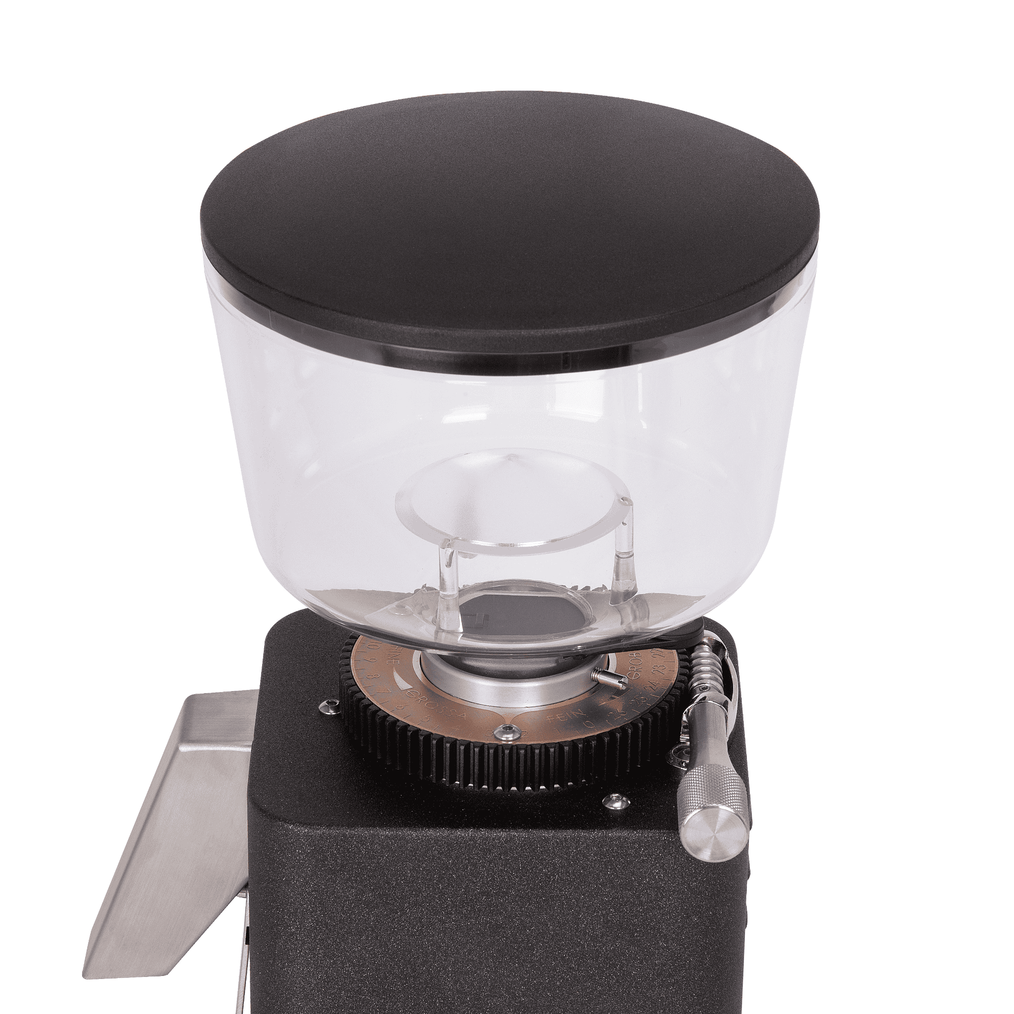 On-Demand heißt hier: Siebträger anlegen, Taster betätigen, fertig. Die manuelle Bedienung gibt dir volle Kontrolle über die Bezugsmenge – perfekt, wenn du mit Waage arbeitest oder Rezepte oft feinjustierst. Die stabile Siebträgergabel hält gängige 58-mm-Siebträger sicher; für besondere Setups kannst du bei Bedarf mit Becher oder Abstandshalter arbeiten. Die gut ablesbare, kupferfarbene Mahlgradskala hilft, Einstellungen nach Reinigung oder Bohnenwechsel schnell wiederzufinden. Der entnehmbare Bohnenbehälter (ca. 500g, optional 1.000g) erleichtert Pflege und Sortenwechsel. So entsteht ein ruhiger, effizienter Ablauf – genau das, was Heim-Baristas an einer mühle für kaffee schätzen. Ergebnis: weniger Streuverlust, mehr Fokus auf Geschmack und eine elektrische kaffeemühle, die deinen Alltag echt einfacher macht.