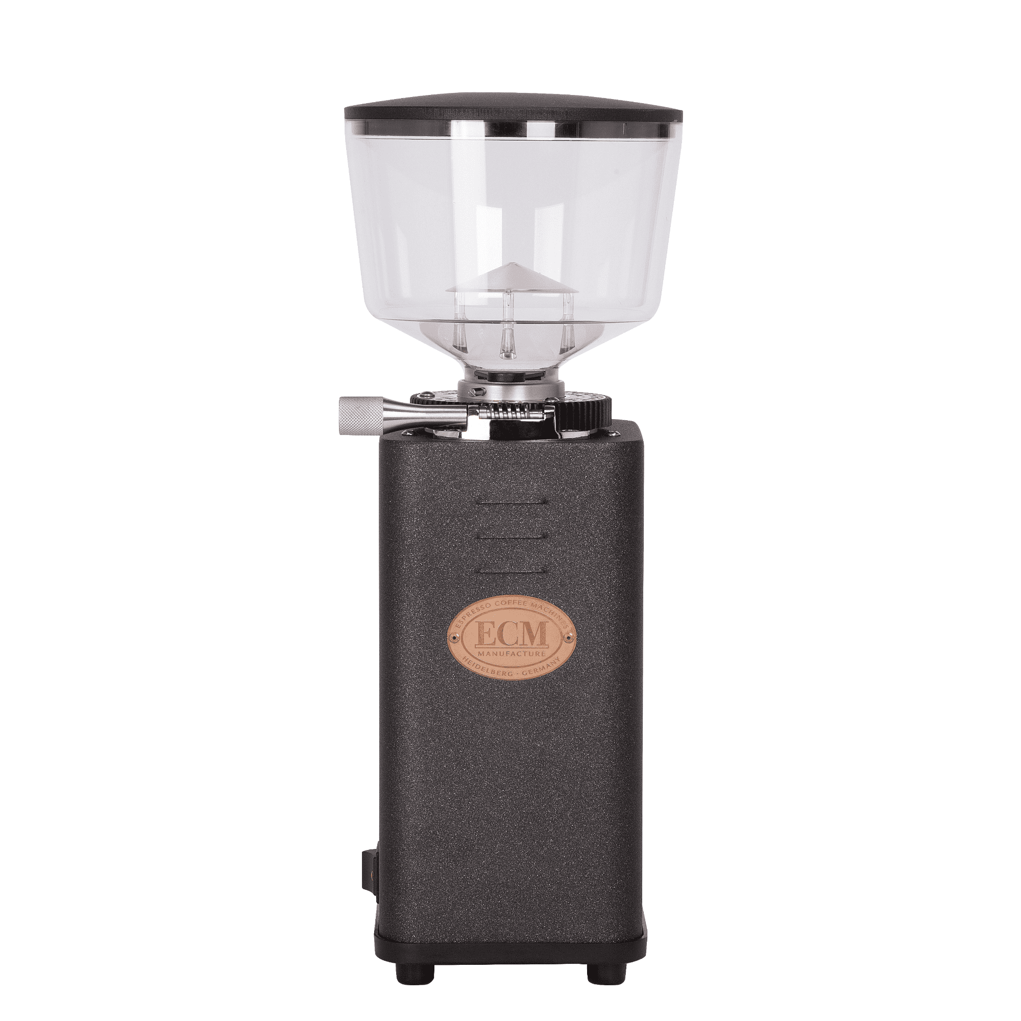 Die ECM S-Manuale 64 Heritage Line vereint die Formsprache klassischer Barista-Mühlen mit moderner Fertigungsqualität. Das pulverbeschichtete Gehäuse in Anthrazit wirkt unaufdringlich edel, während die kupferfarbenen Akzente an Mahlgradskala und Emblem einen warmen, hochwertigen Kontrast setzen. Jede Linie ist bewusst gewählt, jede Oberfläche sauber verarbeitet – typisch ECM. Die satinierte Auswurfnase und die solide Siebträgergabel zeigen, dass Design hier nie Selbstzweck ist, sondern Funktion sichtbar macht. Neben einer ECM Espressomaschine oder auch neben Geräten anderer Hersteller ergibt sich ein harmonisches Setup, das optisch wie haptisch überzeugt. Wer eine elektrische Kaffeemühle sucht, die über Jahre Freude bereitet, findet in der S-Manuale 64 eine langlebige Partnerin: robust im Alltag, stilsicher in jeder Küche und ein wertiges Statement für kompromisslosen Kaffeegenuss.