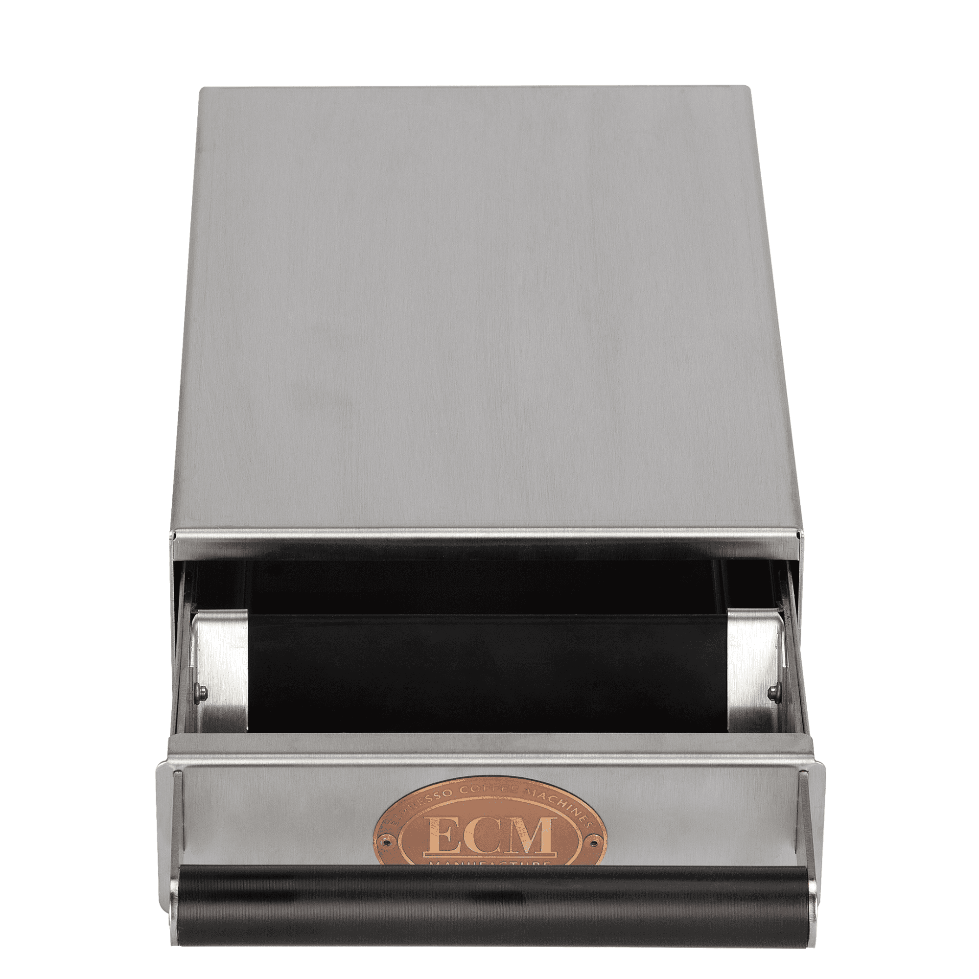 Edles Espresso-Zubehör für deinen Barista-Platz: Die ECM Sudschublade Heritage Line aus satiniertem Edelstahl mit bronzefarbenem Emblem, leisem, gummibeschichtetem Abklopfstab und komfortablem Schubladenauszug. Jetzt bei Caffista in Sindelfingen ansehen oder direkt im Online-Shop bestellen.