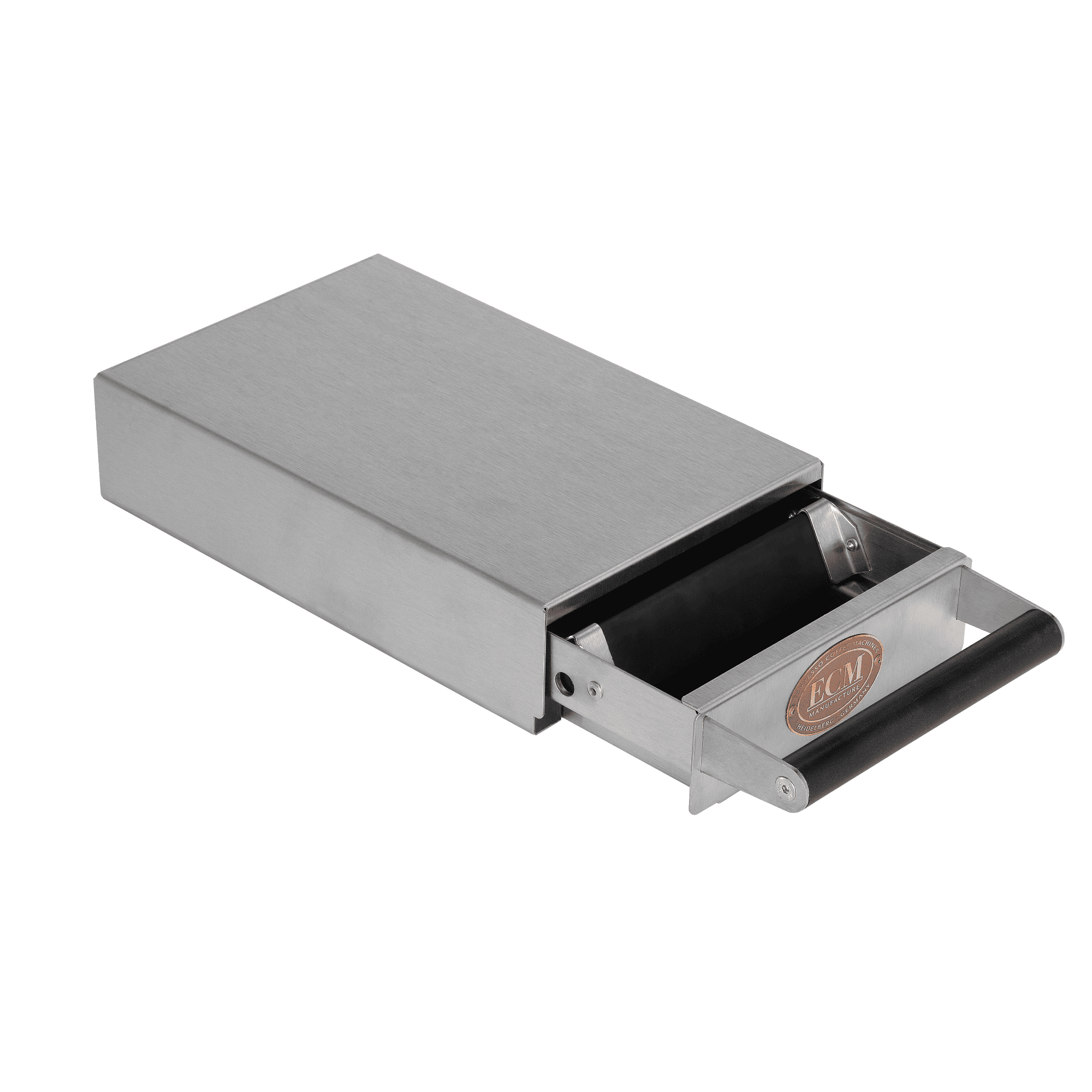 Die ECM Sudschublade Heritage Line (Art.-Nr. AC100071-00) ist die elegante Ergänzung zu Siebträgermaschine und Mühle. Satiniertes Edelstahlgehäuse, bronzefarbenes Emblem und ein dreieckiger, geräuschgedämmter, gummibeschichteter Abklopfstab sorgen für leises, sauberes Arbeiten. Mit komfortablem Ein- und Auszug und kompakten Maßen von 170 × 325 × 70 mm passt sie perfekt an die Heimbarista-Station. Jetzt bei Caffista in Sindelfingen testen oder bequem im Online-Shop bestellen.