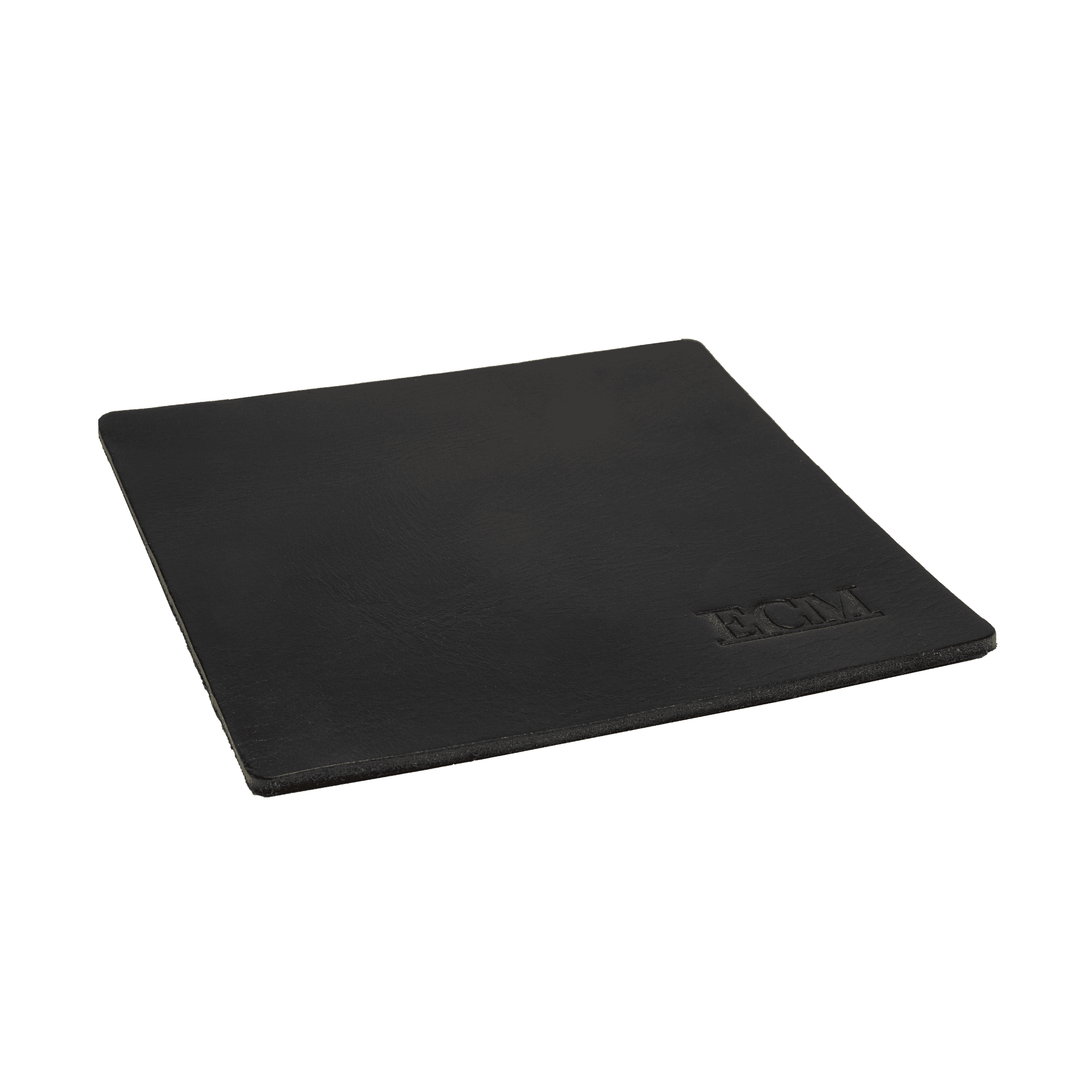 Technische Notiz: Art.-Nr. AC100013‑00, Maße 17 × 17 × 0,5 cm, 100 % Wasserbüffelleder mit Wachssiegel, Farbe Schwarz, dezentes ECM Logo, Reinigung mit feuchtem Tuch.
