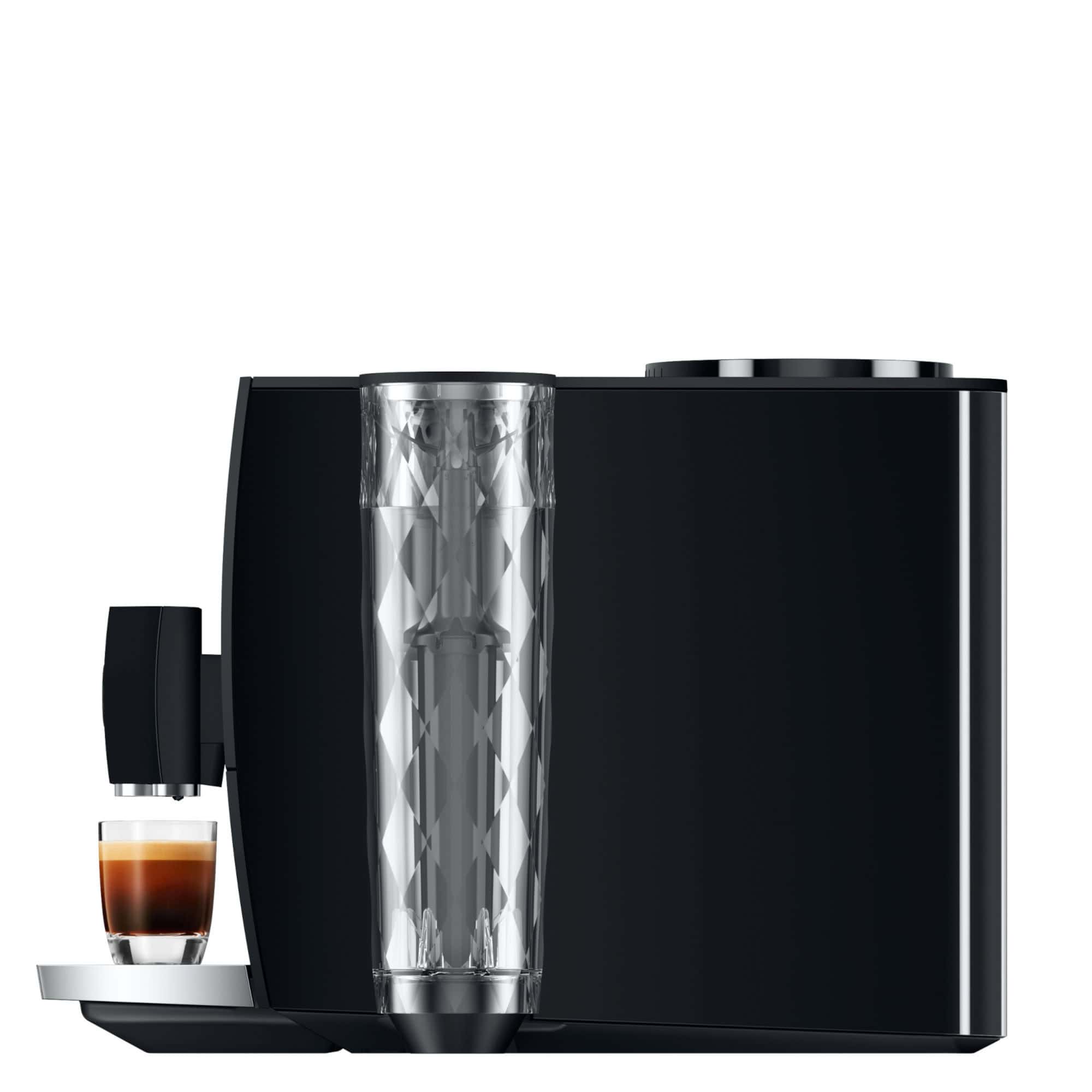 Die JURA ENA 8 Metropolitan Black misst gerade einmal 27,1 × 32,3 × 44,5 cm – und bringt dennoch alles mit, was JURA Kaffee Maschinen auszeichnet. Das reduzierte Design mit verchromter Tassenplattform und diamantgeschliffenem Wassertank setzt edle Akzente. Die Farbvariante Full Metropolitan Black wirkt stilvoll zurückhaltend und passt in moderne Wohnkonzepte genauso wie in elegante Büros. Wer eine Maschine mit Platzersparnis sucht, wird hier fündig.