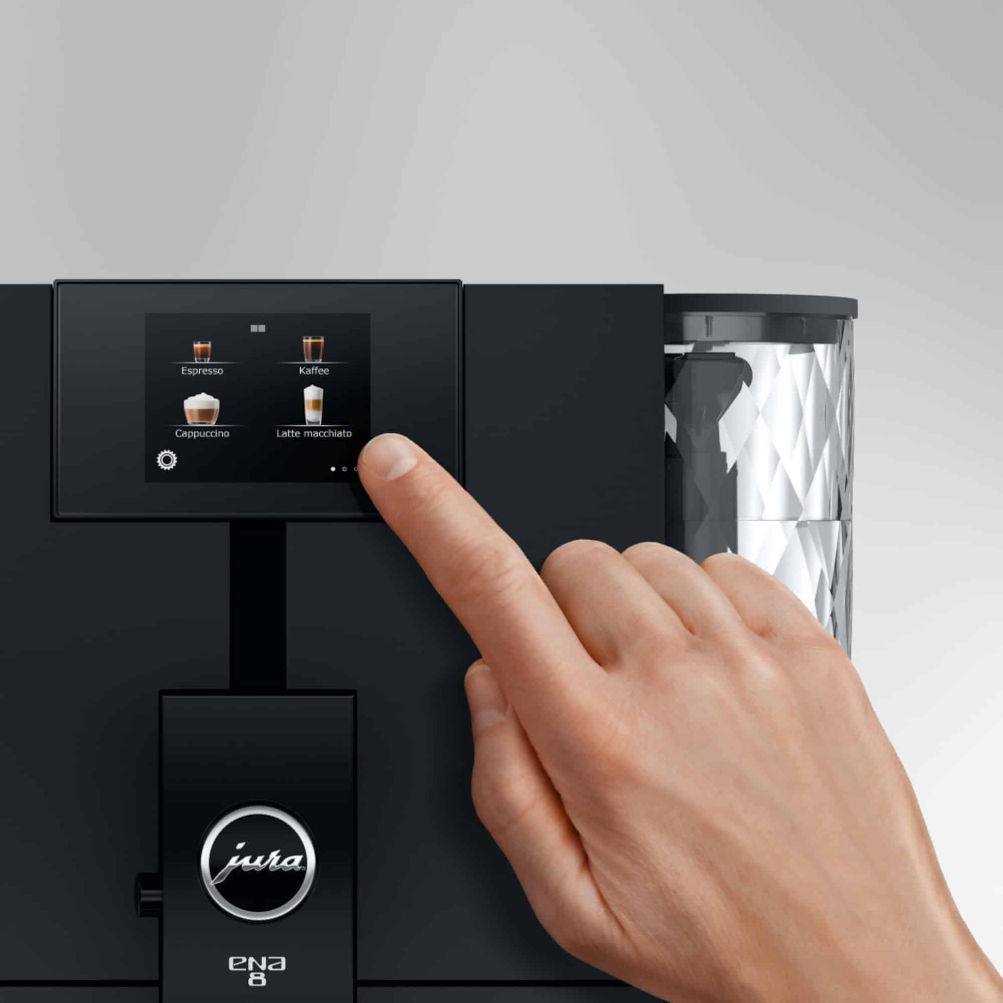 Mit dem 2,8″-TFT-Touchscreen und der intuitiven Benutzerführung lassen sich bis zu 15 Kaffeespezialitäten mit nur einem Fingertipp abrufen. Dank WiFi Connect ist die JURA ENA 8 Full Metropolitan Black mit der J.O.E.®-App kompatibel – so kannst du deine Kaffeemaschine bequem per Smartphone steuern. Auch die Reinigungsfunktionen starten einfach per Fingertipp, was die Reinigung von JURA Kaffeevollautomaten zum Kinderspiel macht. Ob Einzelhaushalt, Büro oder kleine Küche – der Komfort der ENA 8 überzeugt.