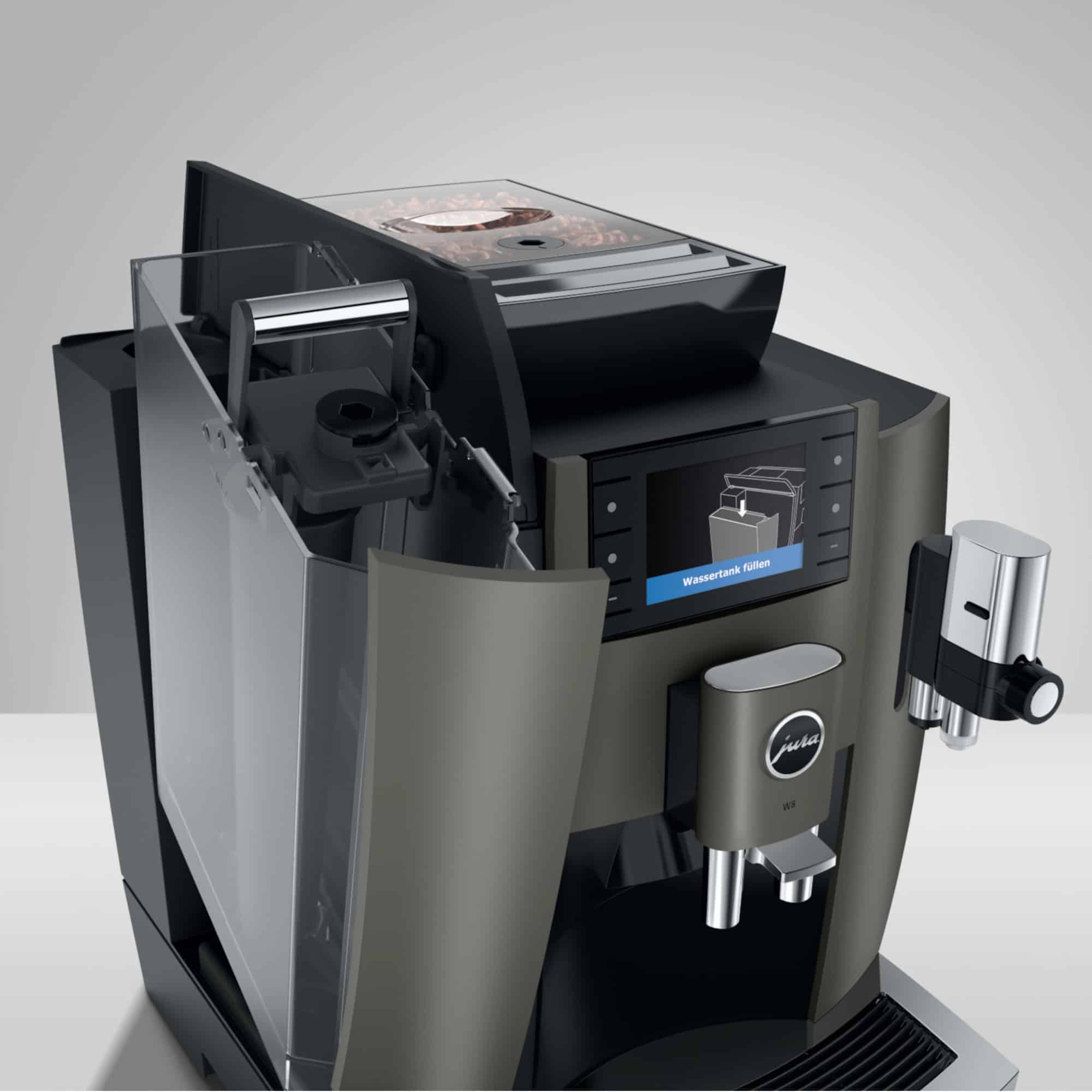 Mit ihrem zeitlosen Look in Dark Inox und der gradlinigen Formensprache fügt sich die W8 harmonisch in jede moderne Umgebung ein. Ob auf der Theke in der Arztpraxis, im Besprechungsraum eines Architekturbüros oder im Kundenbereich eines Showrooms – diese Kaffeemaschine überzeugt durch kompakte Bauweise, stilvolle Chrom-Akzente und ein reduziertes, hochwertiges Design. Trotz ihrer platzsparenden Maße bietet sie professionelle Technik auf hohem Niveau – für alle, die auf repräsentative Kaffeegenusslösungen setzen, ohne Kompromisse beim Stil.