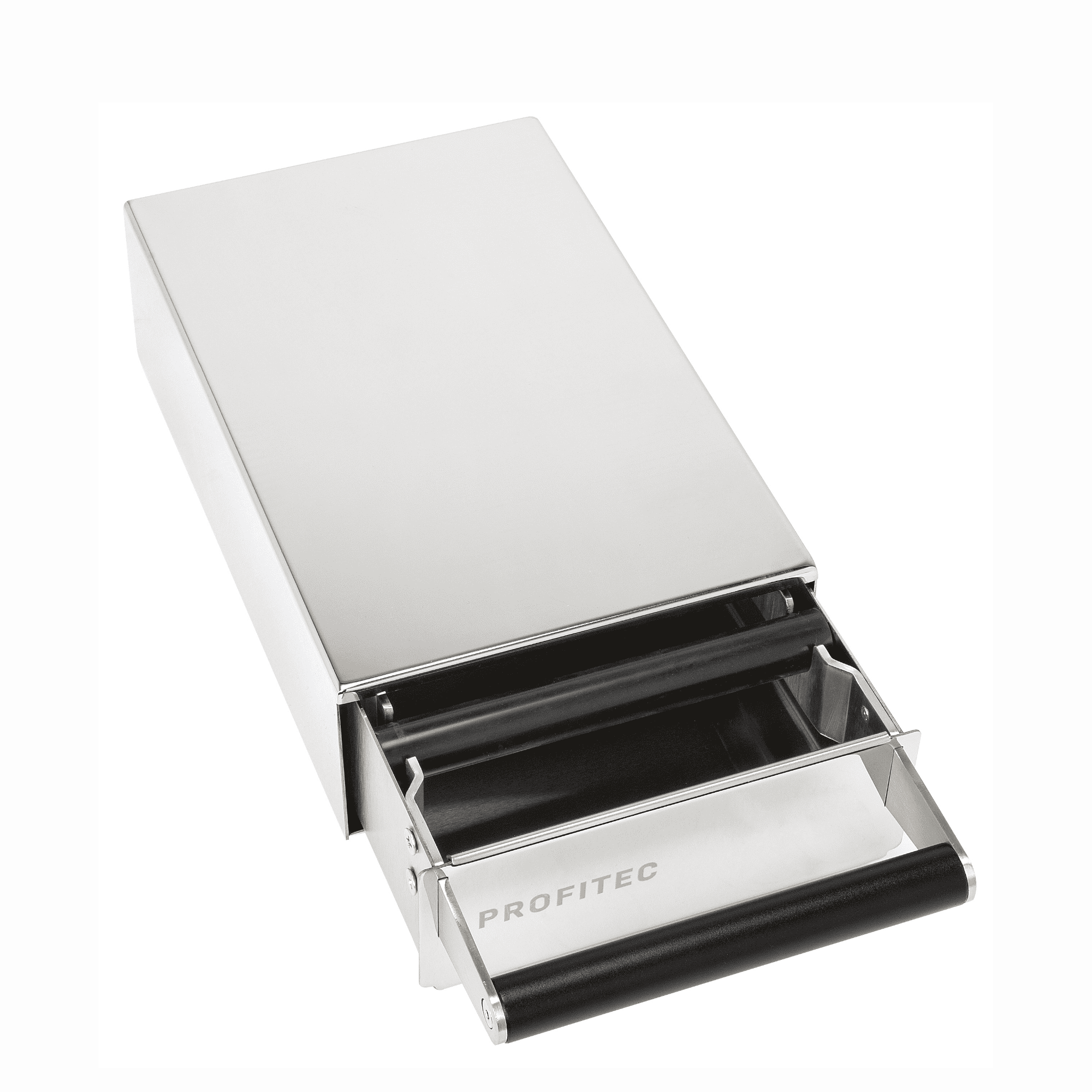 Profitec Sudschublade polierter Edelstahl mit schwarzem Griff