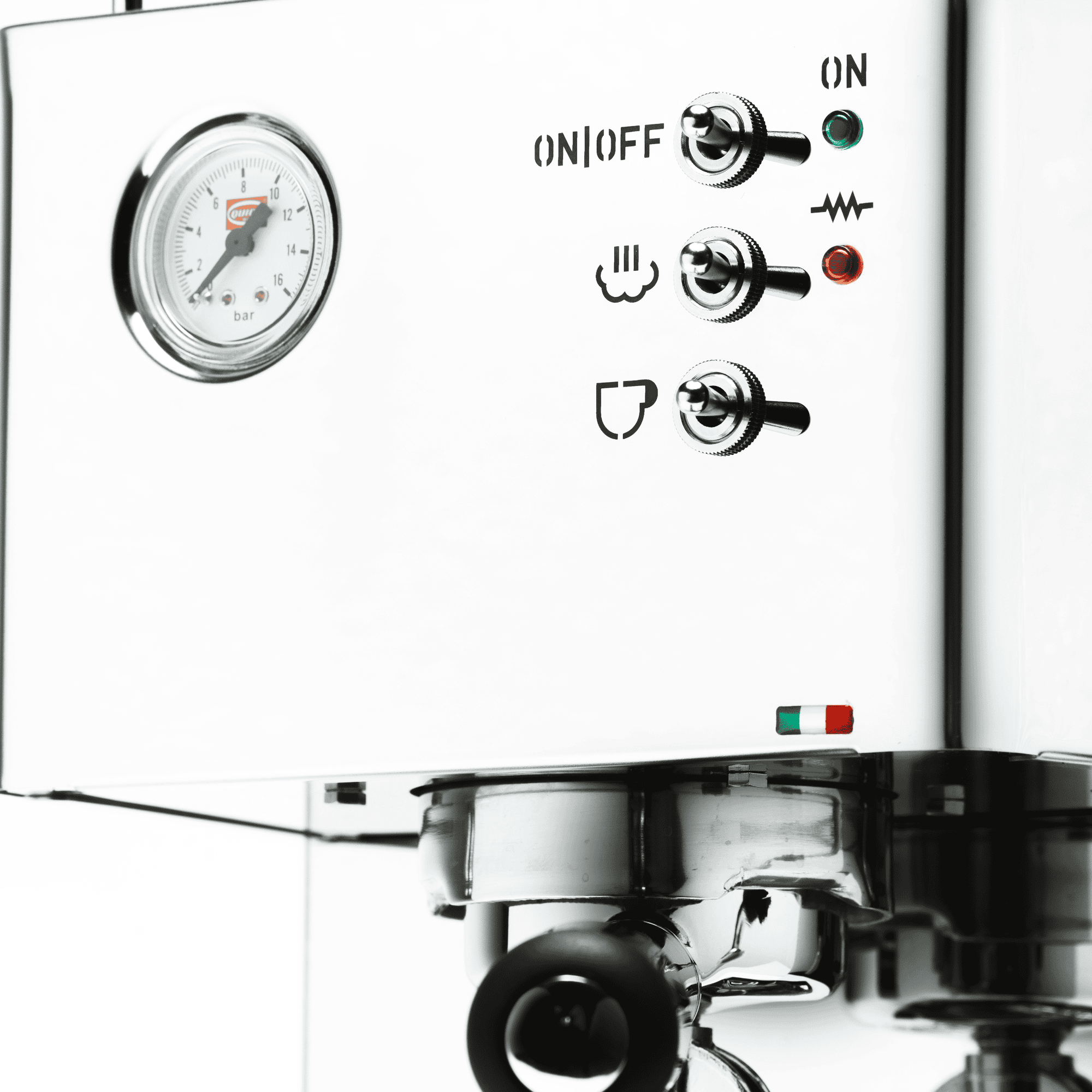 Die Orione 0300 zeigt eindrucksvoll, dass eine hochwertige siebträger kaffeemaschine nicht kompliziert sein muss. Die Bedienung erfolgt über klassische Kippschalter, die nicht nur optisch überzeugen, sondern auch eine direkte und intuitive Steuerung ermöglichen. Dank der klaren Kontrollleuchten weißt du jederzeit, wann die Maschine aufgeheizt ist und bereit für den nächsten Espresso.